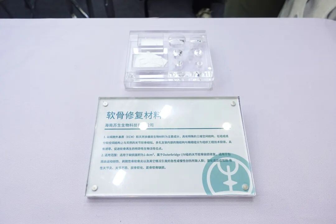 软骨修复材料由苏生生物自主创新研发的“国家重点产品”。以细胞外基质和天然多糖类生物材料为主要成分,具有特殊的三维空间结构,在组成成分和空间结构上与天然的关节软骨相似。多孔支架内部的微结构与精细组分为组织工程技术获得,具有诱导、促进软骨再生的特异性生物活性位点。目前软骨修复材料正在进行临床试验,这是国内首个进入临床阶段的高度仿生的软骨修复产品,奠定了我国自主研发创新技术产品对于解决人类膝关节软骨缺损难题的国际领先地位。