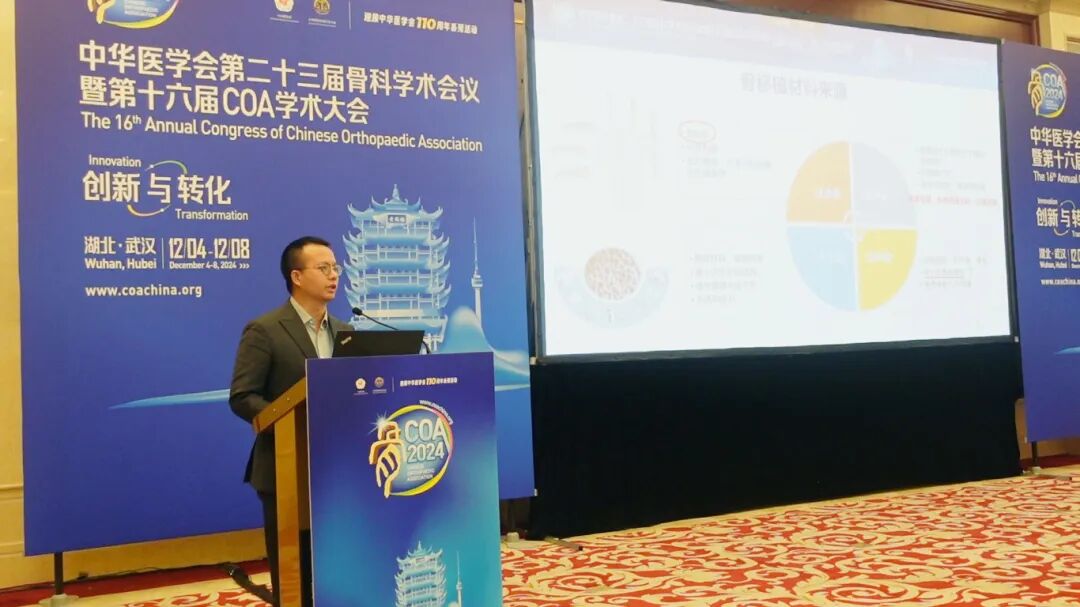苏生生物董事长曾胜研究员受邀在大会上发表题为《复合异种生物骨材料在骨移植中的应用》演讲,详细介绍了复合异种生物骨材料Smartbone®近年来在骨移植中应用的案例,为骨移植带来了新的解决方案,同与会嘉宾深入探讨产品的创新与临床应用,展现了苏生生物卓越的创新能力与技术实力。